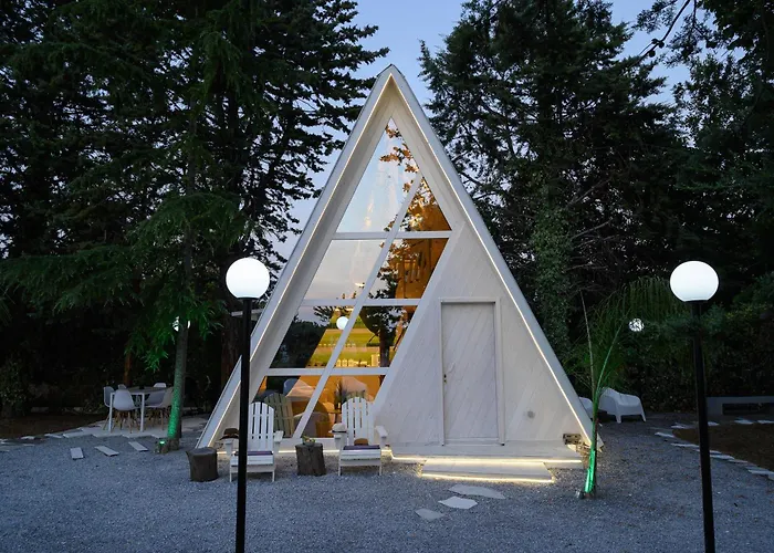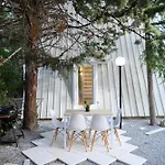 A Vergia városi faház önellátó felszereltséggel, többek között felszerelt konyhasarokkal, valamint kültéri étkezőhellyel várja a vendégeket. Az ételek elkészítéséhez kávé/tea készítőt, hűtőt és sütőt is igénybe vehet.